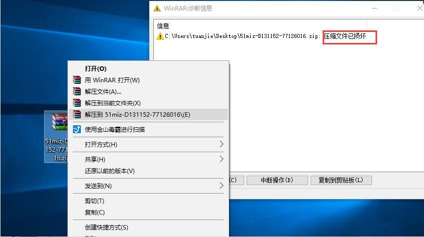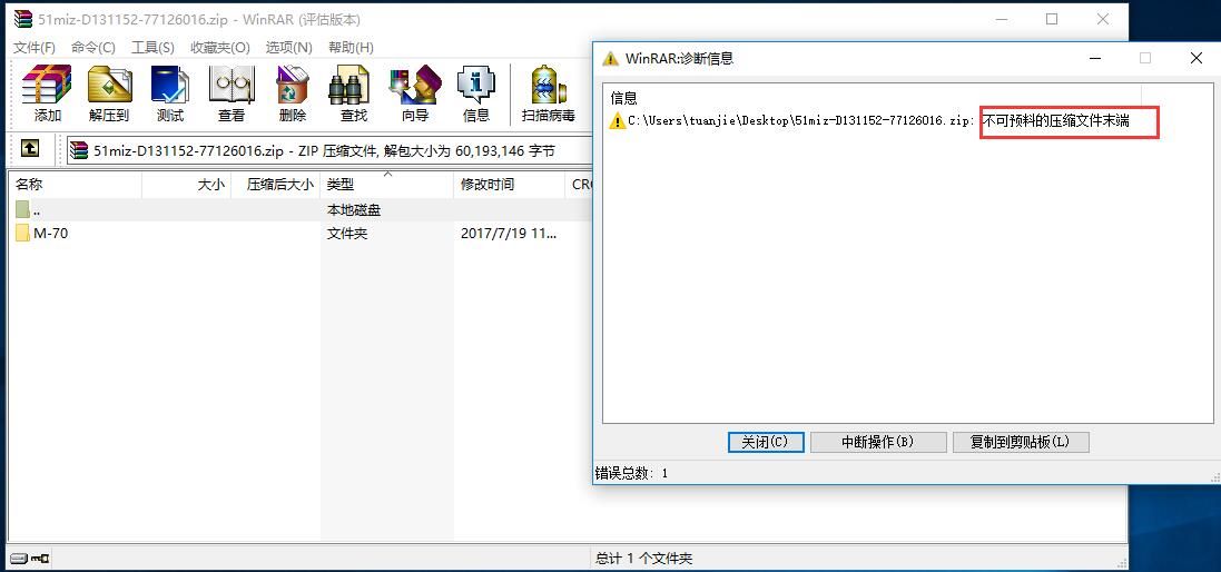 windows系统自带压缩包解压时提示如下: